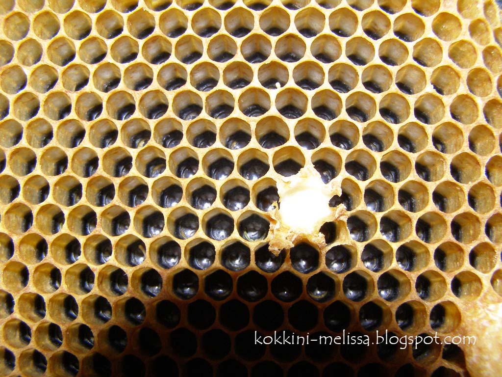 Η μέλισσα έχει τέσσερα ζεύγη κηρογόνων αδένων στους στερνίτες (στο μέρος της κοιλιάς).Εδώ βλέπουμε από τα 2 ½ ζεύγη κηρογόνων αδένων να βγαίνουν πέντε λέπια.